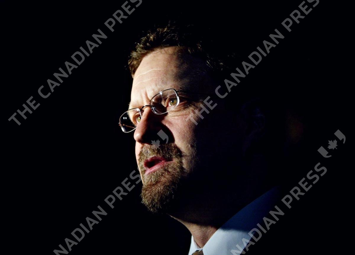 Minister of Agriculture and Agri-Food and Minister for the Canadian Wheat Board Chuck Strahl talks with the media before the first Conservative caucus meeting on Parliament Hill in Ottawa Tuesday, Feb, 7, 2006.(CP PHOTO/Tom Hanson)
