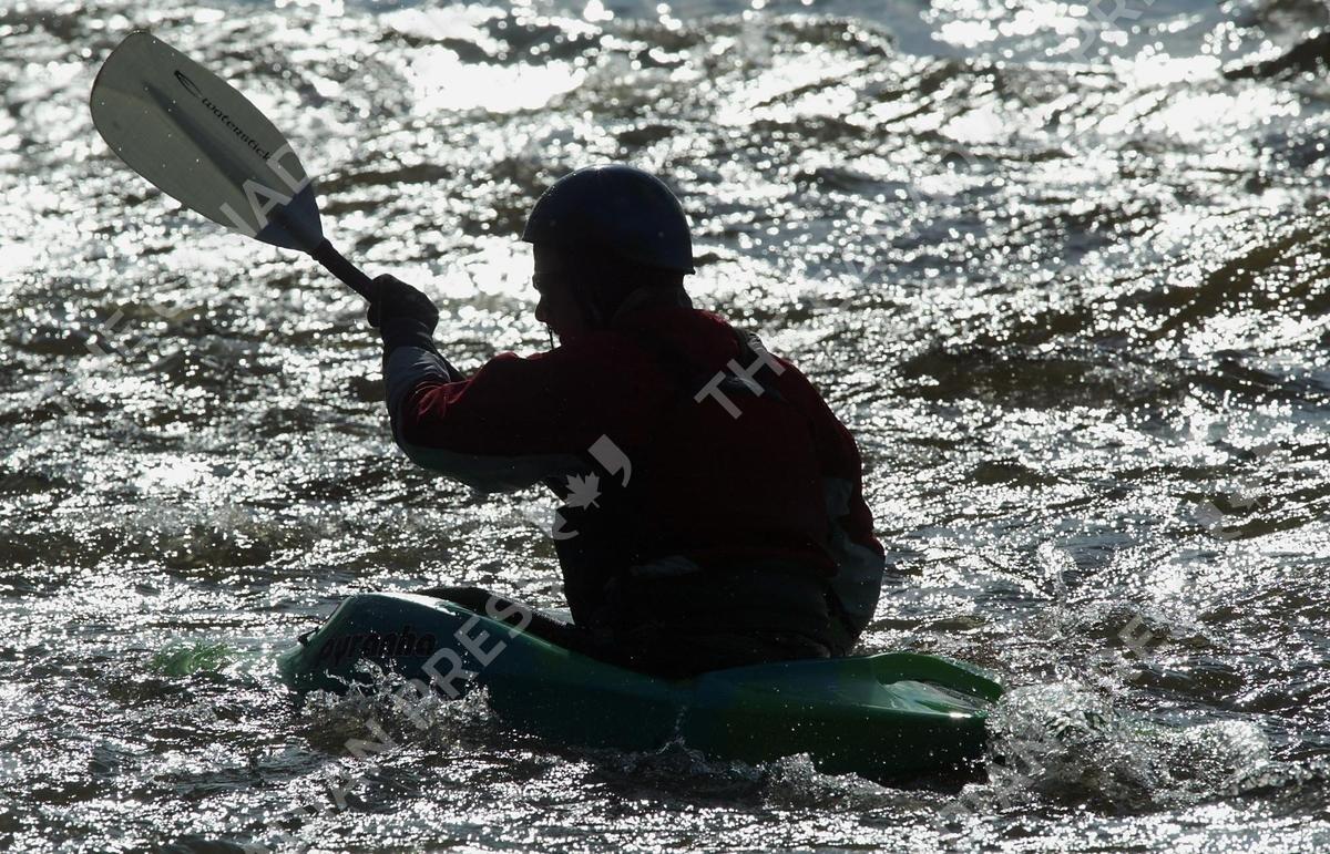 A kayaker is silhouetted as he paddles along the Ottawa River in Ottawa Thursday, April 8, 2004.(CP PHOTO/Jonathan Hayward)