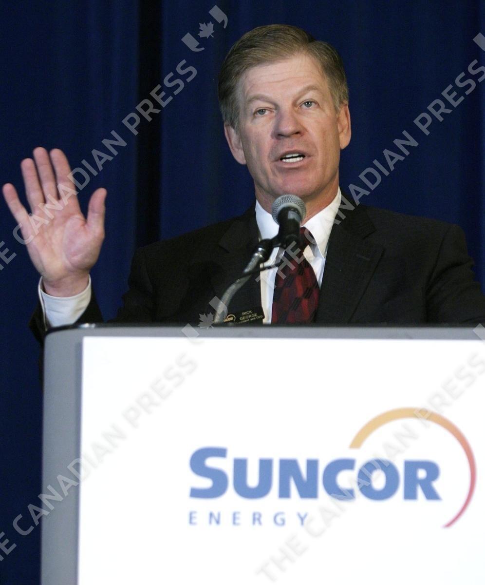 Rick George, president and CEO of Suncor Energy, speaks to the annual meeting at the Hotel Macdonald in Edmonton on Thursday April 29, 2004. (CP PHOTO/Ian Jackson)