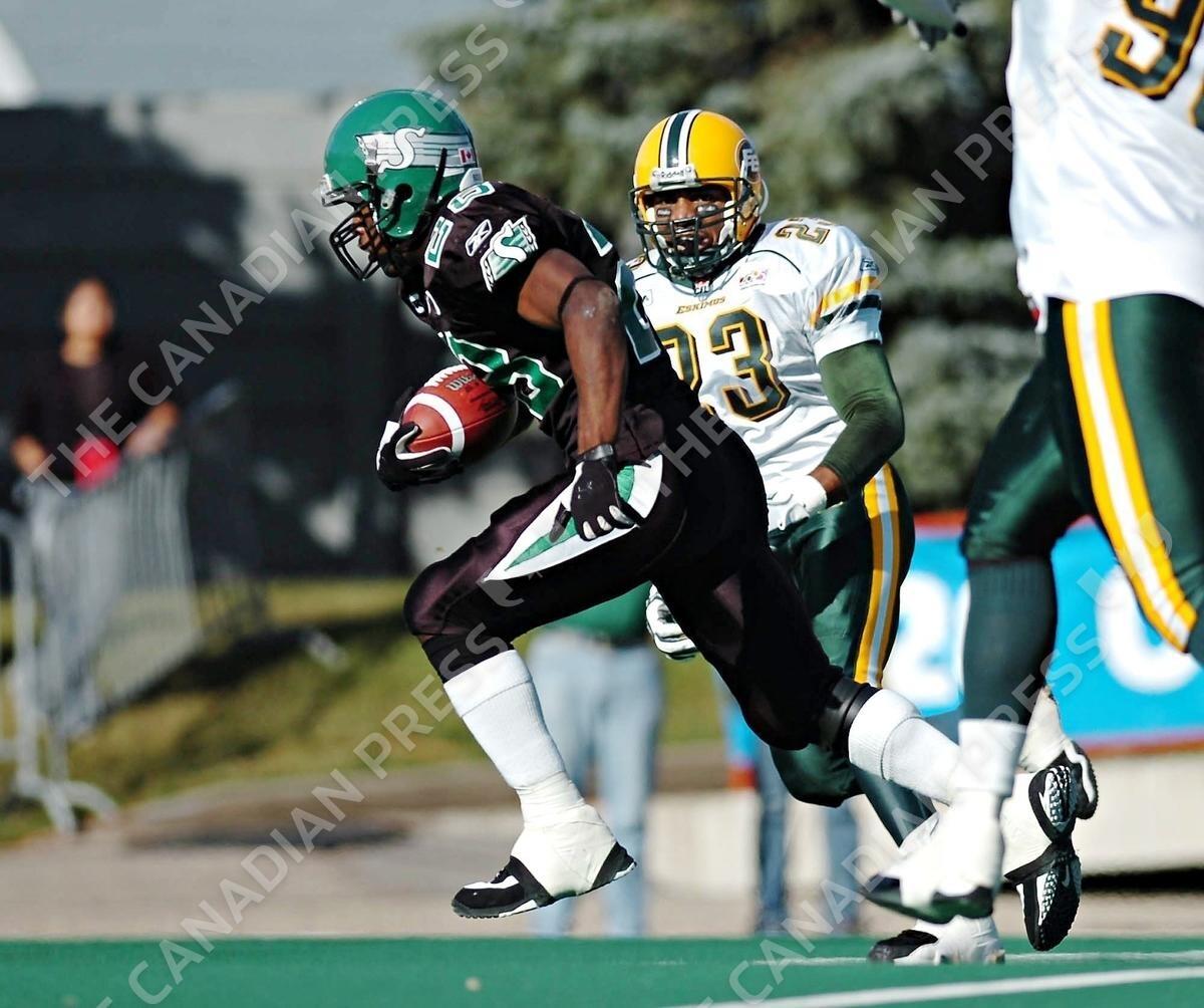Ssakatchewan Roughriders # 28 Kenton Keith runs this second quarter touchdown Sunday, Sept. 18, 2005, at Taylor Field in Regina, Saskatchewan. (CP PHOTO/Troy Fleece)