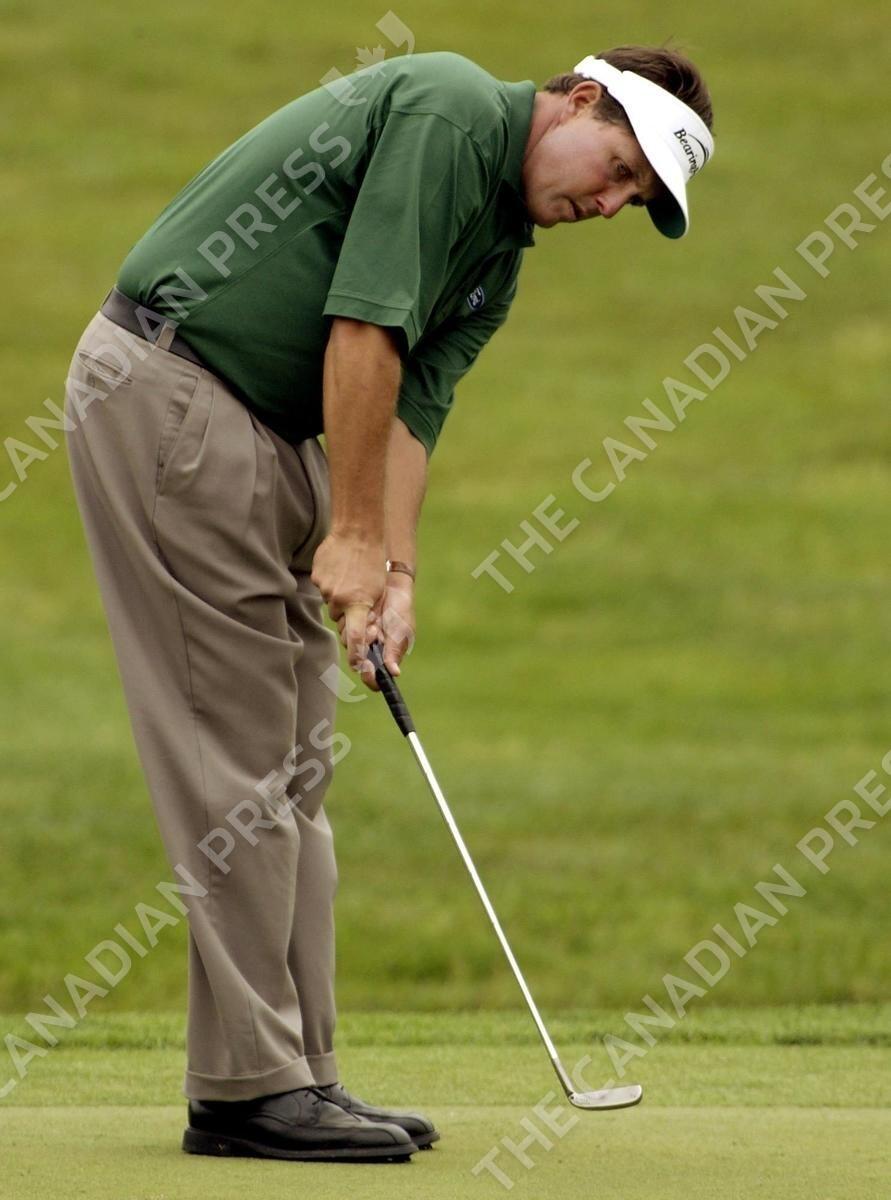 Masters winner Phil Mickelson putts on the 17th hole of the Glen Abbey golf course during the pro-am portion of the Bell Canadian Open in Oakville, Ont. on Wednesday, September 8, 2004. The tournament starts Thursday. (CP PHOTO/J.P. Moczulski)