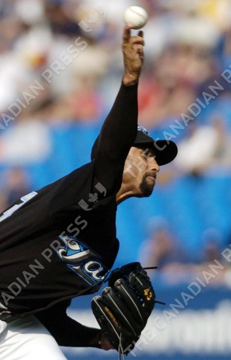 Toronto Blue Jays Miguel Batista delivers a pitch against the Oakland Athletics during first inning AL action in Toronto Saturday Sept. 4, 2004. (CP PHOTO/Aaron Harris)