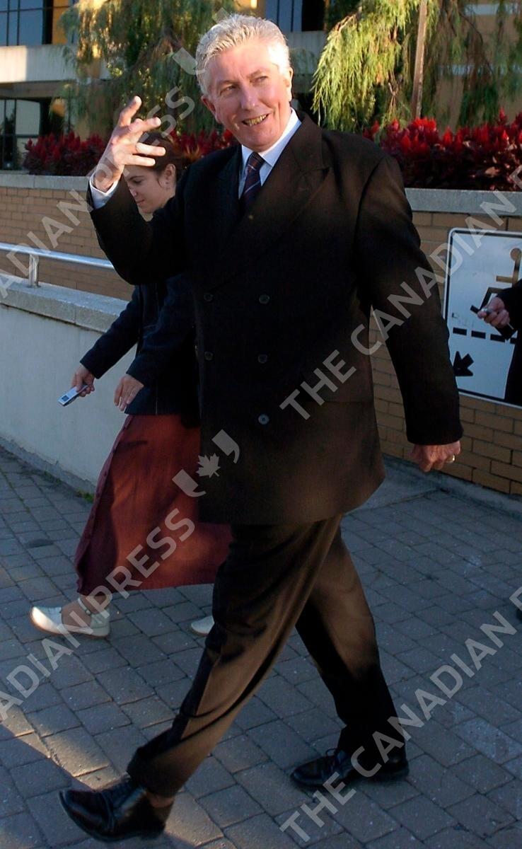 Bloc Quebecois Leader Gilles Duceppe walks toward the media before his meeting with Prime Minister Paul Martin in Lougueuil's City hall on Thursday September 2, 2004 (CP PHOTO/Francois Roy)