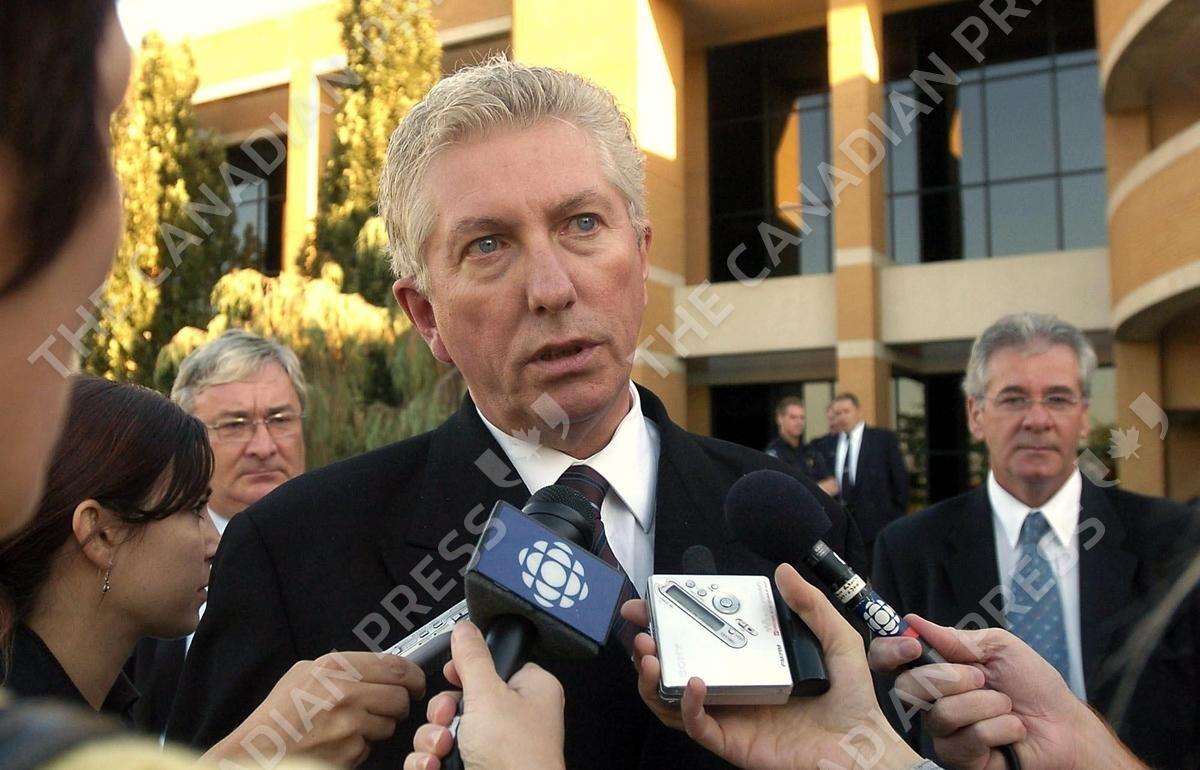 Bloc Quebecois Leader Gilles Duceppe talks to the media before his meeting with Prime Minister Paul Martin in Lougueuil's City hall on Thursday September 2, 2004 (CP PHOTO/Francois Roy)