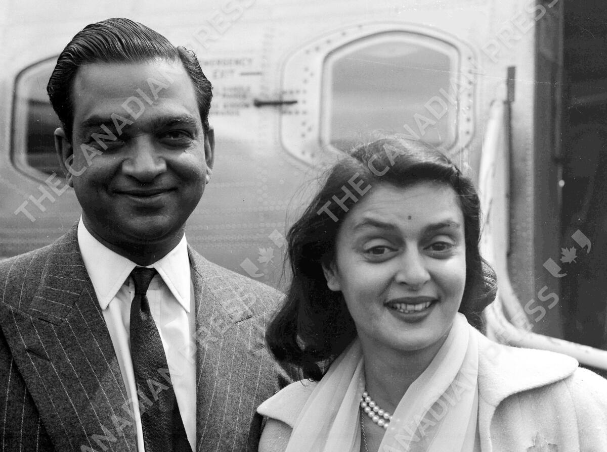 FILE - In this May 17, 1956 file photo, Maharani Gayatri Devi is pictured along with her husband the Maharajah of Jaipur at London airport. The former queen of the western Indian desert kingdom of Jaipur, Gayatri Devi, often described as one of the most beautiful women in the world, has died Wednesday, July 29, 2009, after being hospitalized for stomach and respiratory problems at age 90. (AP Photo/File)