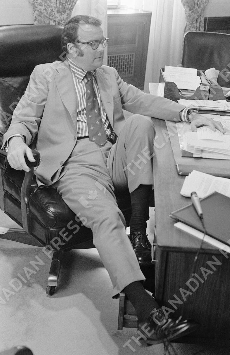 ** CORRECTS SPELLING OF FIRST NAME TO WILLIAM ** FILE - In this Oct. 25, 1973, file photo Deputy Atty. Gen. William Ruckelshaus talks about the firing of special Watergate prosecutor Archibald Cox, the resignation of Atty. Gen. Elliot Richardson, his own firing, and says a new independent prosecutor should be appointed to continue the Watergate investigation during an interview at the Justice Department in Washington. (AP Photo/Henry Burroughs, File)