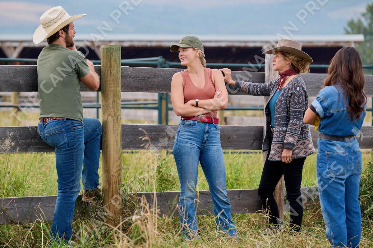 RIDE, from left: Beau Mirchoff, Tiera Skovbye, Nancy Travis, Sara Garcia, The McMurray Curse', (Season 1, ep. 103, aired April 9, 2023). photo: Michelle Faye / ©Hallmark Channel / Courtesy Everett Collection