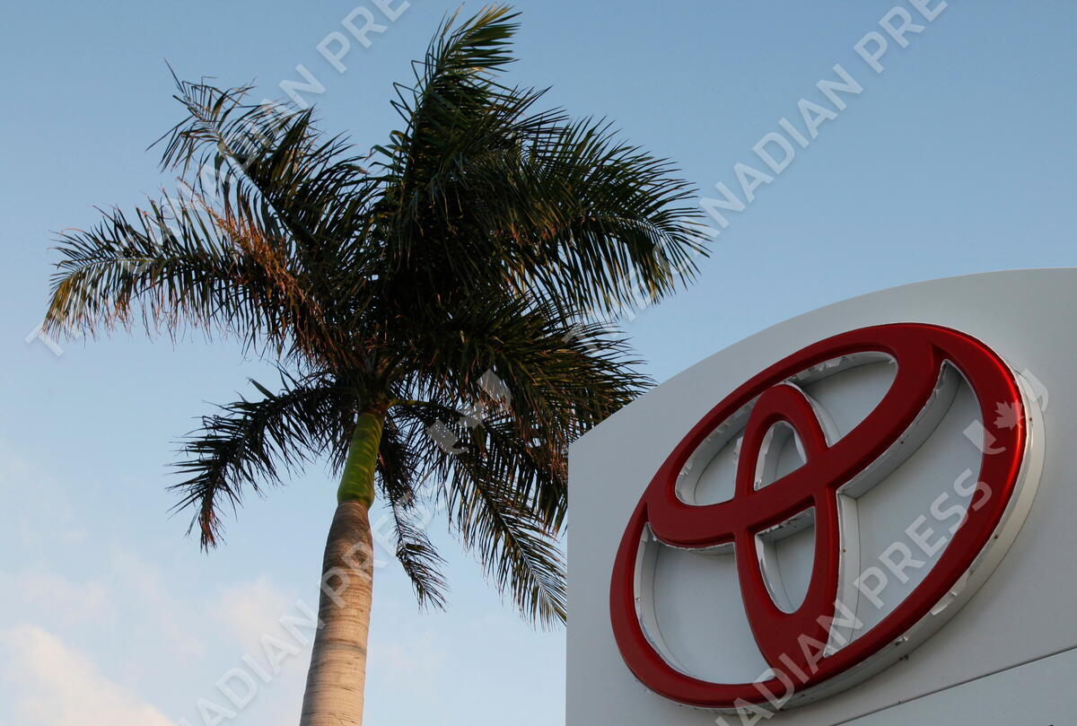 FILE - This Feb. 3, 2010 file photo shows a palm tree behind a Toyota sign at Earl Stewart Toyota in North Palm Beach, Fla. Toyota is recalling 247,000 vehicles in high-humidity areas as an air bag problem that has plagued most of the auto industry continues to widen. The recall covers vehicles in South Florida, along the Gulf Coast, in Puerto Rico, Hawaii, the U.S. Virgin Islands, Guam, Saipan and American Samoa. (AP Photo/Wilfredo Lee, File)