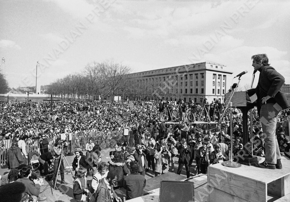 FILE - In this Saturday, April 1, 1972 file picture, Daniel Ellsberg, chief defendant in the Pentagon Papers case, addresses a crowd at the State Capitol in Harrisburg, Pa. following an anti-war parade that ended at the Capitol. The rally was also held in support of the seven defendants in the Harrisburg conspiracy trial. Forty years after the explosive leak of the Pentagon Papers, a secret government study chronicling deception and misadventure in U.S. conduct of the Vietnam War, the report is coming out in its entirety on Monday, June 13, 2011. The 7,000-page report was the WikiLeaks disclosure of its time, a sensational breach of government confidentiality that shook Richard Nixon's presidency and prompted a Supreme Court fight that advanced press freedom. (AP Photo/Rusty Kennedy)