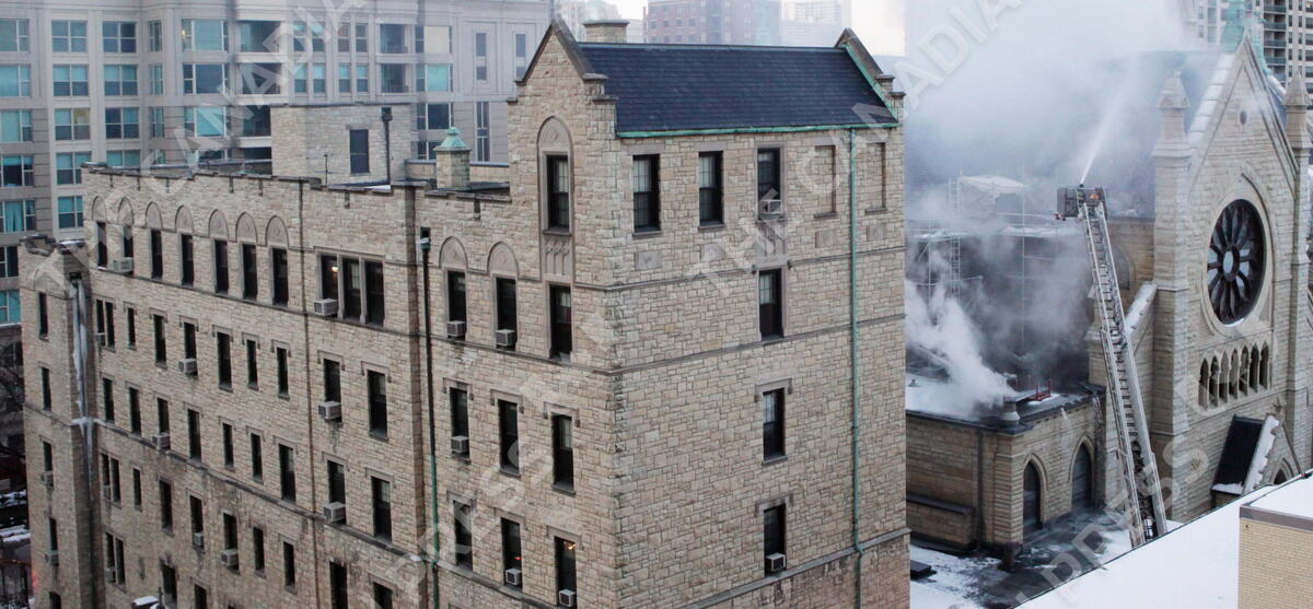 FILE -In this Feb. 4, 2009 photo the rectory of Holy Name Cathedral, left, is shown as Chicago firefighters work in freezing temperatures on an extra-alarm fire at the Cathedral in Chicago. The incoming archbishop of Chicago, Blase Cupich has chosen to live in the rectory of Holy Name, rather than the mansion where Cardinal Francis George has lived for years. When appointed the new archbishop of Chicago, Blase Cupich argued that Pope Francis was sending a mere pastor and not a message. But Cupich has been sending Francis-like messages of his own as he prepares to officially assume leadership Tuesday of one of the largest and most high-profile archdioceses in the U.S. Among the most welcomed was that he would live in a simple rectory rather than the mansion, as his predecessors did. It was among a number of signs, embraced by the city’s Catholics, that he is eager to be seen as part of the archdiocese, rather than above it, as was sometimes the case with his immediate predecessor. (AP Photo/Charles Rex Arbogast)