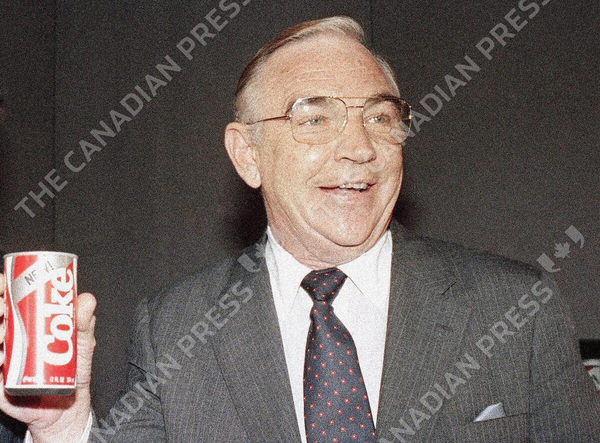 FILE - In this April 23, 1985 file photo, Donald R. Keough, then Coca-Cola Co. President and Chief Operating Officer, toasts New Coke after a presentation at Lincoln Center in New York. Coca-Cola says Keough, who steered the company through the "cola wars" of the 1980s, died Tuesday, Feb. 24, 2015 in Atlanta. He was 88. (AP Photo/Marty Lederhandler, File)