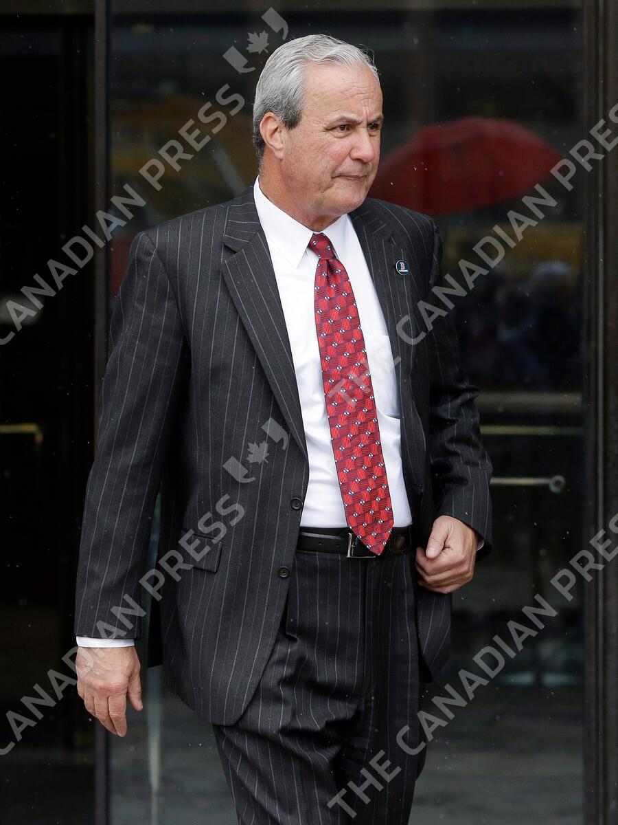 Watertown, Mass., Police Chief Edward Deveau leaves federal court on Wednesday, April 8, 2015, in Boston. Dzhokhar Tsarnaev was convicted on all charges Wednesday in the Boston Marathon bombing by a jury that will now decide whether the 21-year-old should be executed or shown mercy for what his lawyer says was a crime masterminded by his big brother. (AP Photo/Steven Senne)