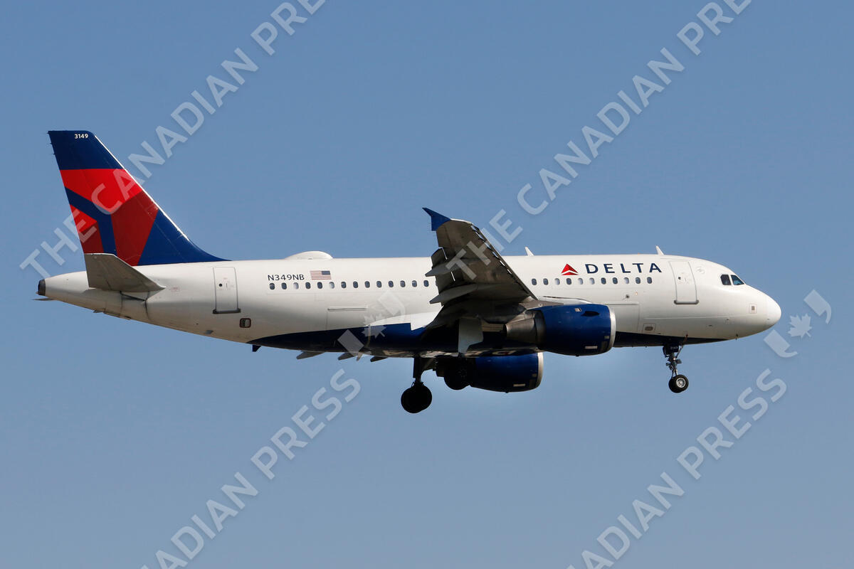 An Airbus A319 (A319-100) jetliner, belonging to Delta Air Lines, lands at Toronto Pearson International Airport in Mississauga, Ontario on April 27, 2023. THE CANADIAN PRESS IMAGES/Larry MacDougal