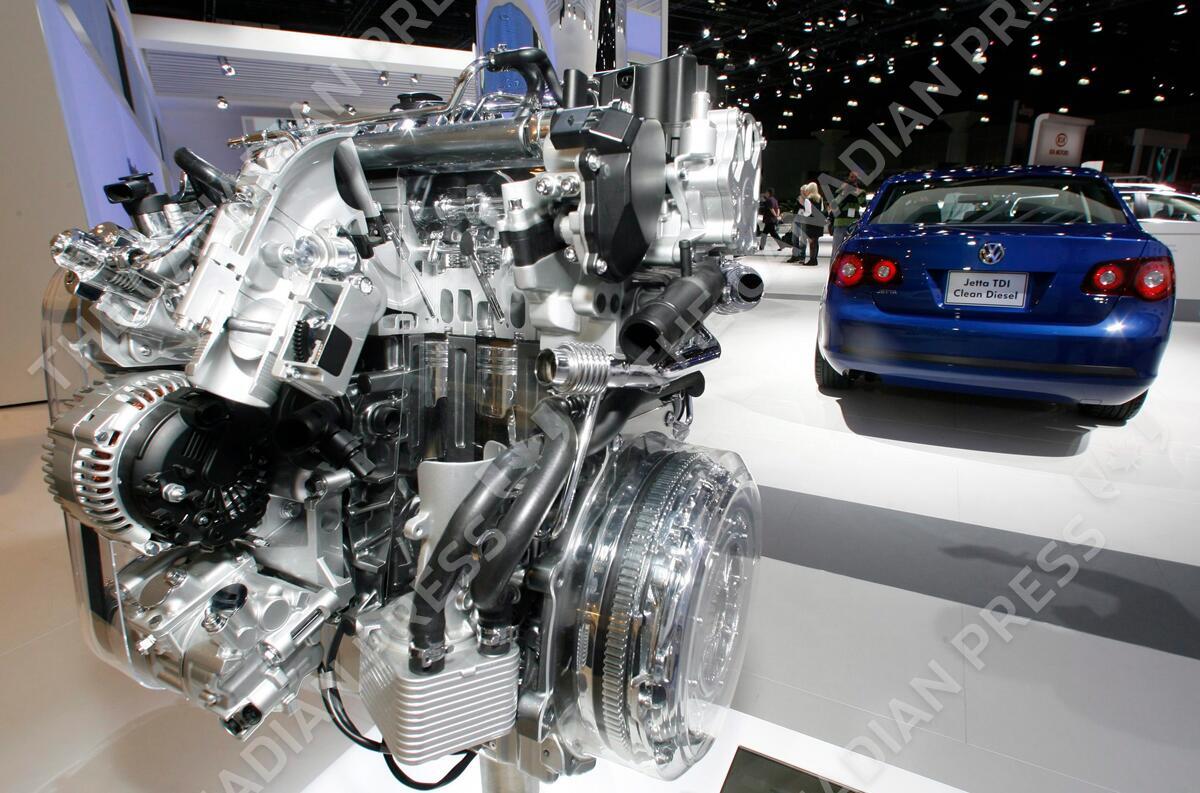 FILE - In this Nov. 20, 2008 file photo a Volkswagen Jetta TDI diesel engine is displayed at the Los Angeles Auto Show. Green Car Journal named Volkswagen's 2009 Jetta TDI as the "Green Car of the Year" at the show on Thursday, making it the first clean-diesel vehicle to win the prize. Around 15 billion euros (US$ 16.9 billion) was wiped off the market value of Volkswagen AG on Monday, Sept. 21, 2015 following revelations that the German carmaker rigged U.S. emissions tests for about 500,000 diesel cars. (AP Photo/Damian Dovarganes)