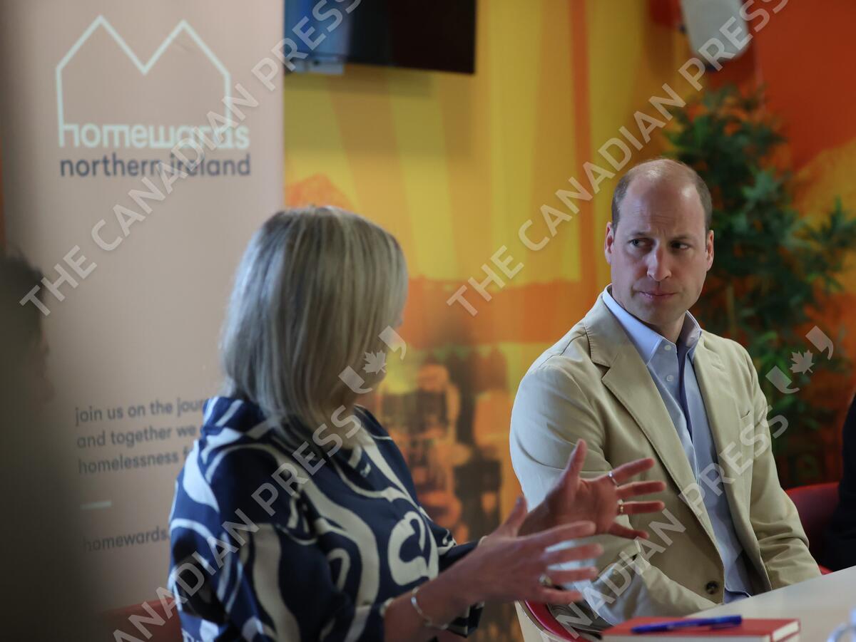The Prince of Wales with Grainia Long, Chief Executive at Northern Ireland Housing Executive, during a visit to the East Belfast Mission at the Skainos Centre, Belfast, as part of his tour of the UK to launch a project aimed at ending homelessness. Picture date: Tuesday June 27, 2023.