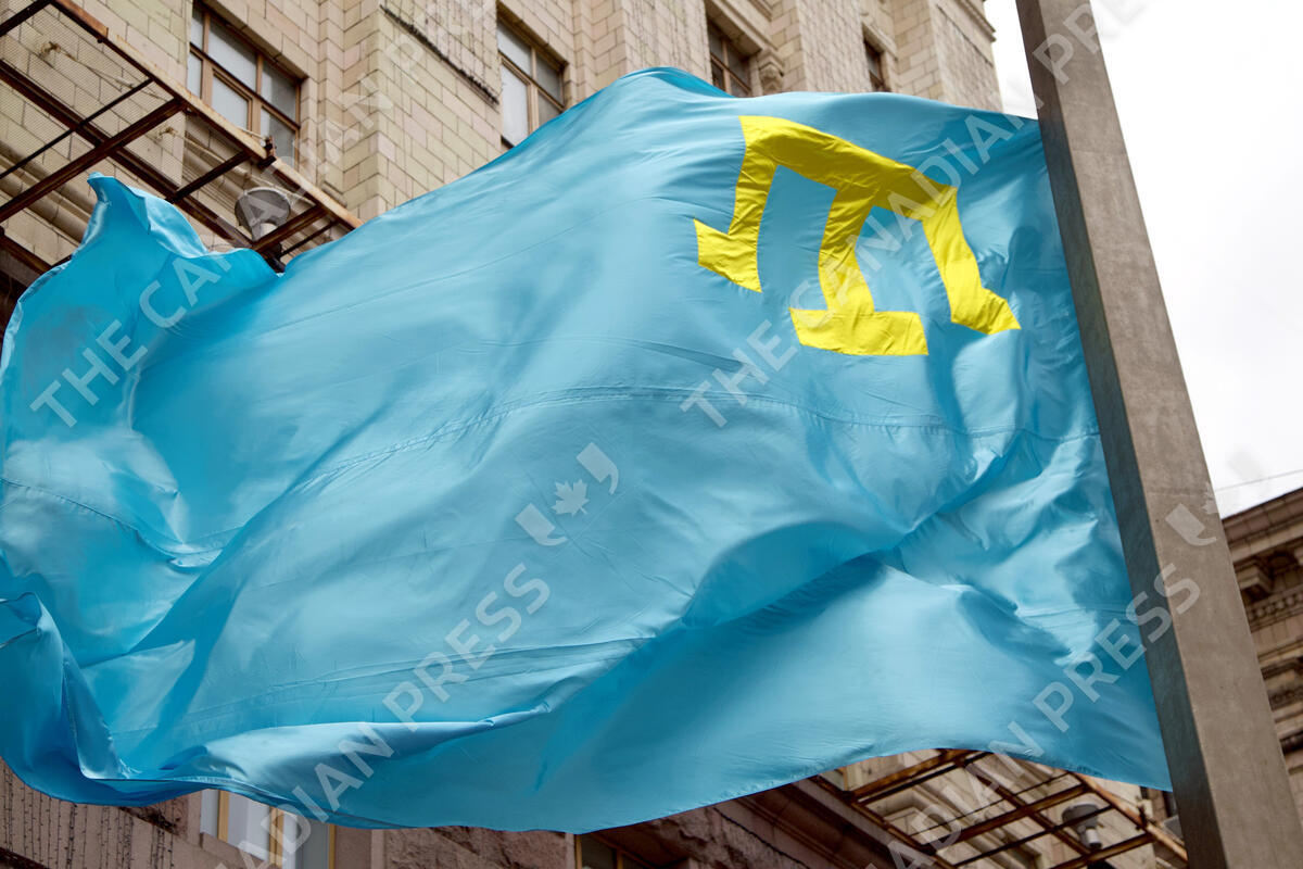 June 26, 2023, Kyiv, Ukraine: The Crimean Tatar flag flies outside the Kyiv City State Administration building on Crimean Tatar Flag Day in Kyiv, capital of Ukraine. (Credit Image: © Kirill Chubotin/Ukrinform via ZUMA Press Wire)