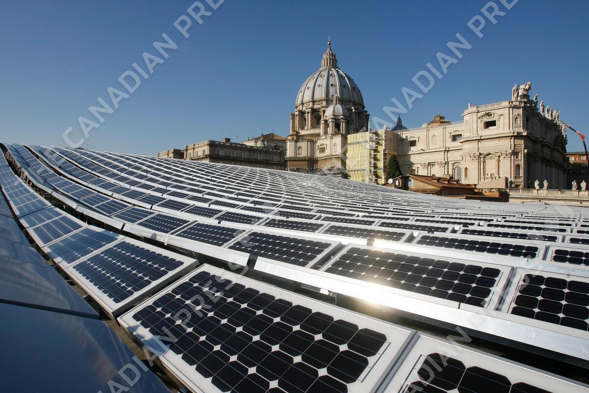 This Wednesday, Nov. 26, 2008, file photo, shows solar panels on the roof of the Paul VI Hall, at the Vatican. Pope Benedict XVI was dubbed "the Green Pope" for his frequent calls to stop ecological devastation and his efforts to bring solar power to the Vatican city-state. "Can we remain indifferent before the problems associated with such realities as climate change?"’ Benedict said in 2010. (AP Photo/Alessandra Tarantino)