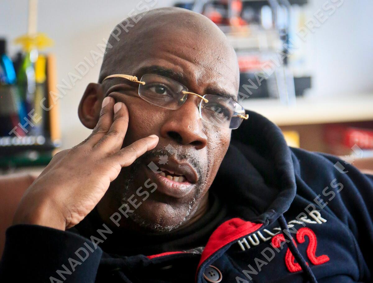 FILE - In this April 18, 2014 file photo, Jonathan Fleming, who was exonerated of murder after almost 25 years behind bars, listens during a visit with his lawyer in New York. New York City has agreed to pay $6.25 million to Fleming the city comptroller said Tuesday, June 23, 2015. (AP Photo/Bebeto Matthews)