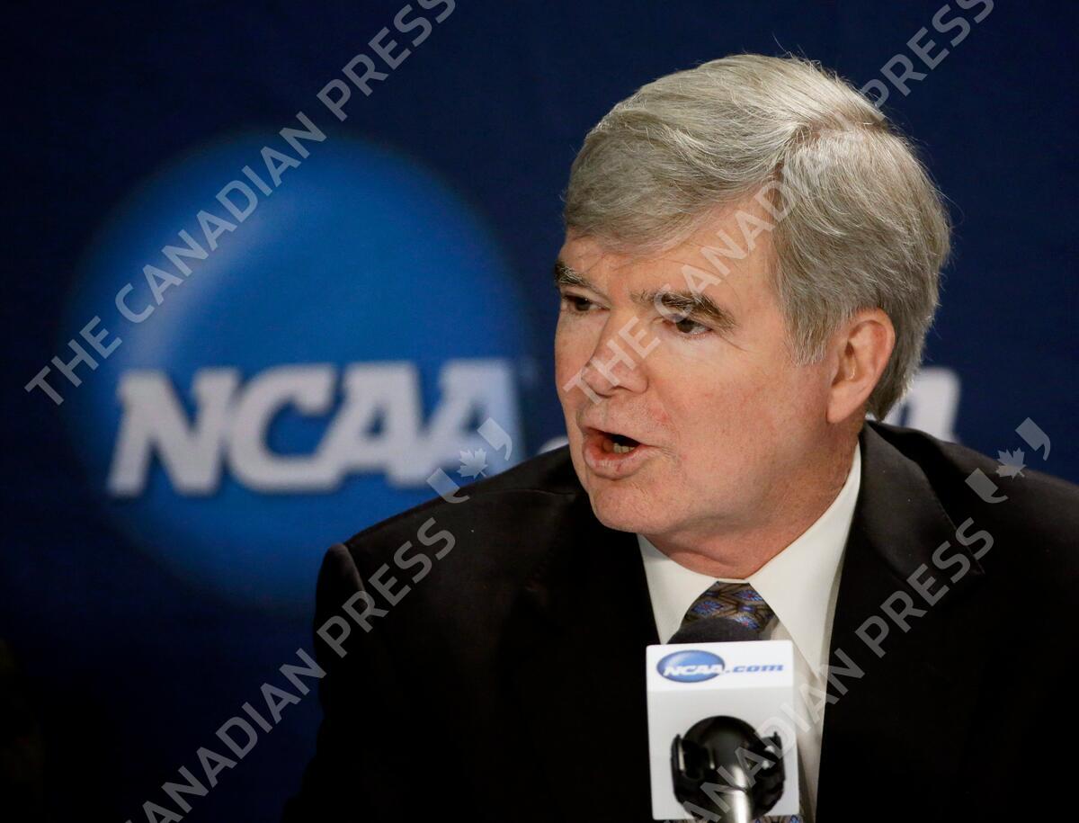 FILE - In this April 6, 2014, file photo, NCAA President Mark Emmert answers a question at a news conference in Arlington, Texas. The National Labor Relations Board has dismissed a historic ruling that Northwestern University football players are school employees who are entitled to form what would be the nation's first union of college athletes. The NLRB released its decision Monday, Aug. 17, 2015. The losing side does not have an option to appeal.(AP Photo/David J. Phillip, File)