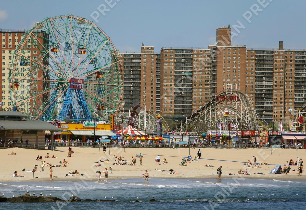 FILE - In this May 20, 2014 file photo, pedestrians walk along the boardwalk past the Wonder Wheel Tuesday in the Coney Island section of the Brooklyn borough of New York. Summer fun at Coney Island just got some new attractions in addition to the beach and amusement park rides. Now visitors can enjoy colorful murals and artisanal food vendors selling everything from truffle fries to hibiscus ice pops. Coney Art Walls launched this week a block from the boardwalk and right behind Nathan’s Famous, the hot-dog emporium. Some of the same street artists whose work can be seen in Miami’s popular Wynwood neighborhood were brought in to decorate outdoor walls for the food-and-art experience. (AP Photo/Frank Franklin II, File)