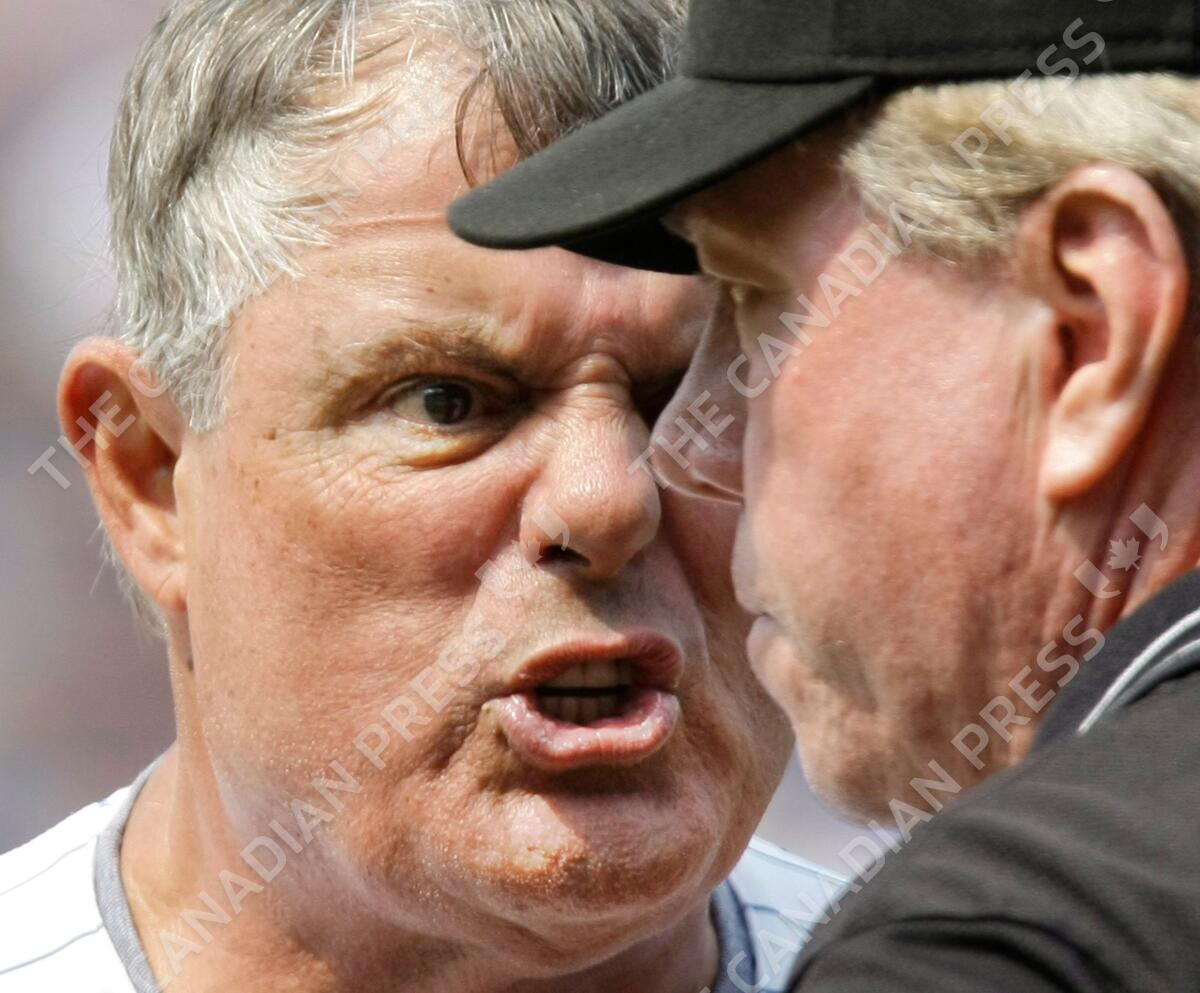 FILE - In this July 26, 2008 file photo, Chicago Cubs manager Lou Piniella, left, argues with third base umpire Brian Gorman, right, after first base umpire Rob Drake ejected Piniella during the ninth inning of their baseball game against the Florida Marlins at Wrigley Field in Chicago. With baseball's expanded replay rule this season, those colorful, saliva-trading tirades Bobby Cox and Lou Piniella made famous could very well be replaced by far more civilized behavior. (AP Photo/Charles Rex Arbogast, File)