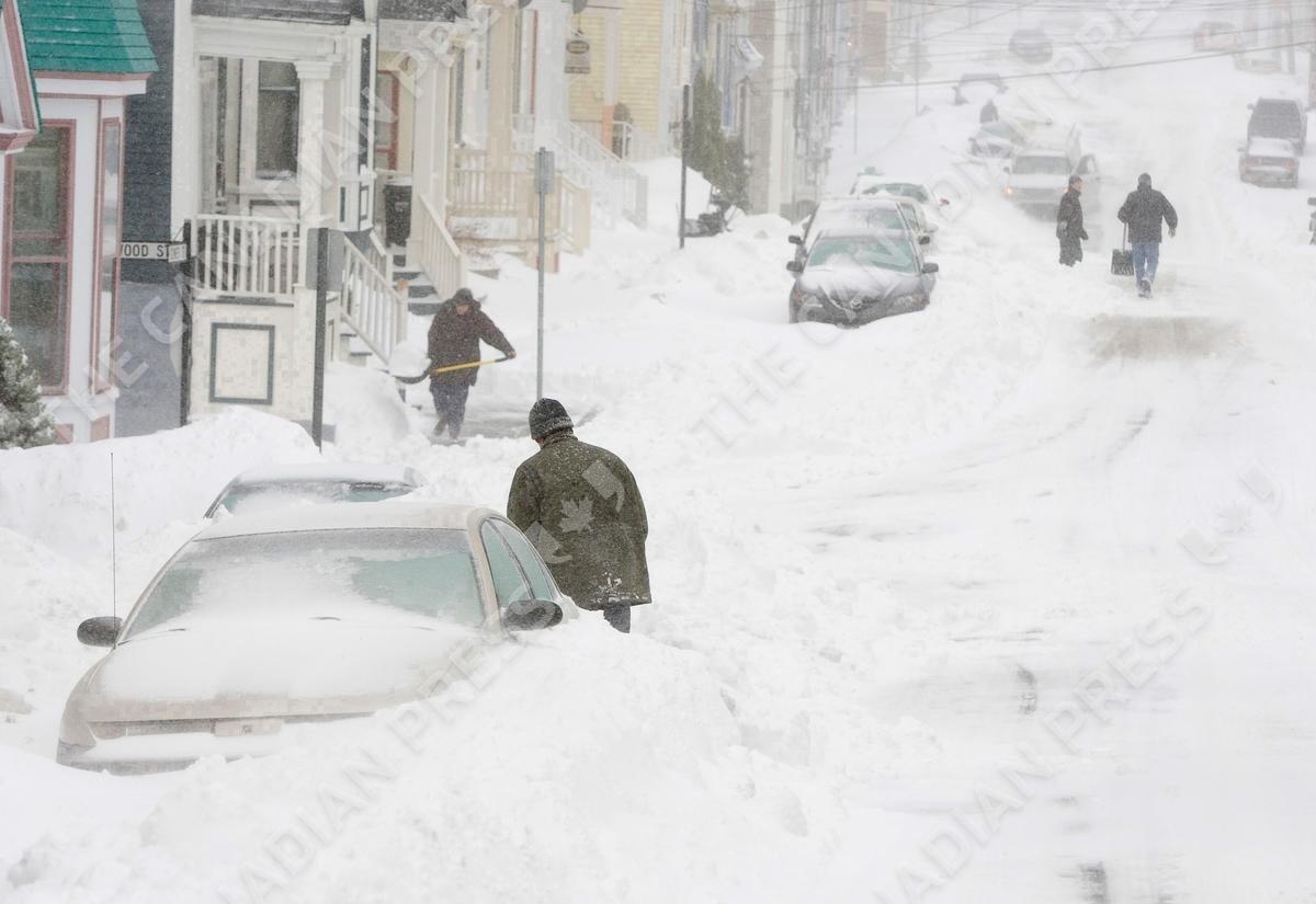 Residents of downtown St. John's, N.L., street shovel out from a massive snowfall Friday, Dec. 28, 2007. THE CANADIAN PRESS/Jonathan Hayward