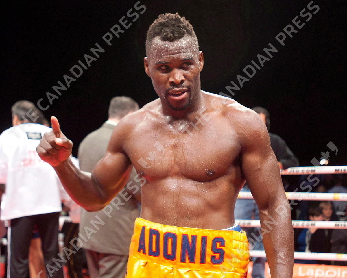 Adonis Stevenson, from Canada, celebrates in Montreal, on October 12, 2012. Stevenson's next fight will be for a world super-middleweight title. It is the name of his opponent that remains up in the air. THE CANADIAN PRESS/Graham Hughes