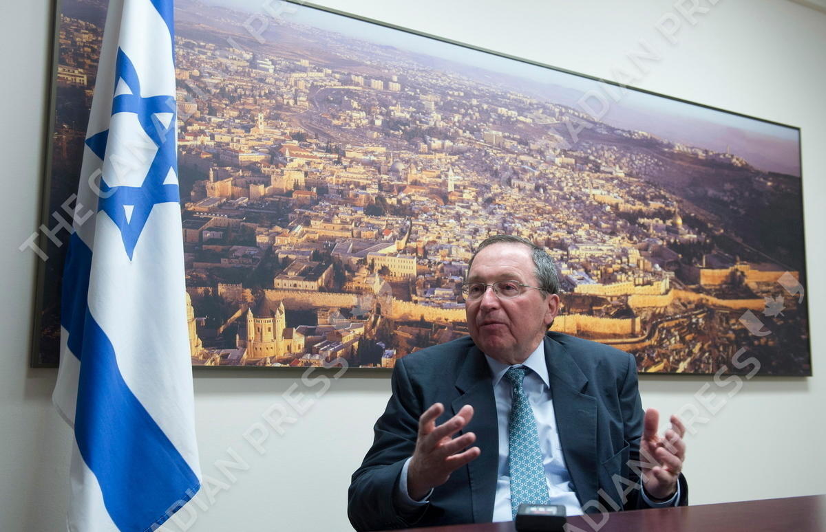 Israeli Ambassador Rafi Barak is seen in front of an image of the city of Jerusalem during an interview at the Israeli embassy, Tuesday December 3, 2013 in Ottawa. THE CANADIAN PRESS/Adrian Wyld
