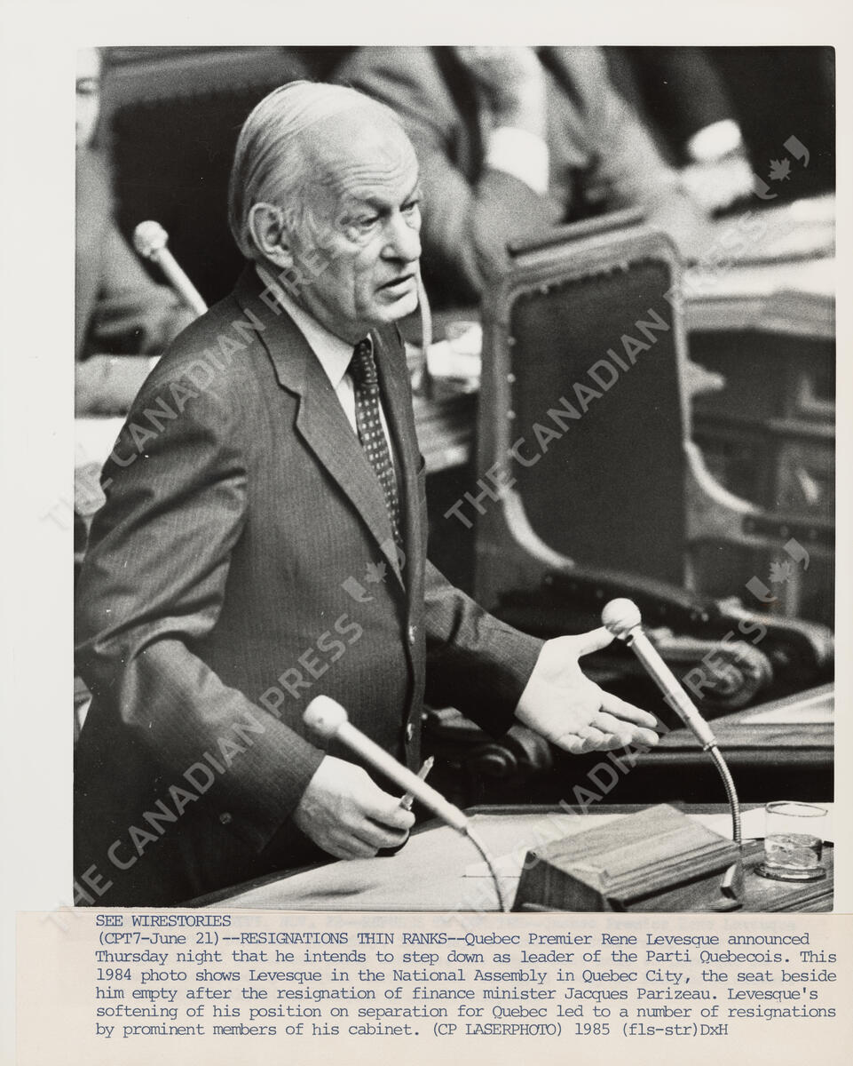From the archival file folder: René Lévesque, 1984. THE CANADIAN PRESS/files
