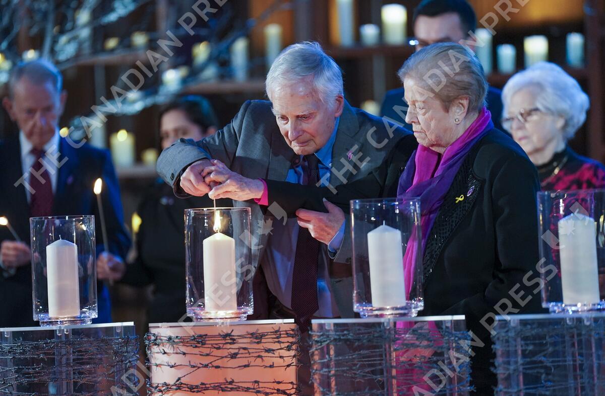 Steven Frank and Rachell Levy light candles during a ceremony at London's Guildhall, to commemorate Holocaust Memorial Day and the 80th anniversary of the liberation of Auschwitz-Birkenau. Picture date: Monday January 27, 2025.