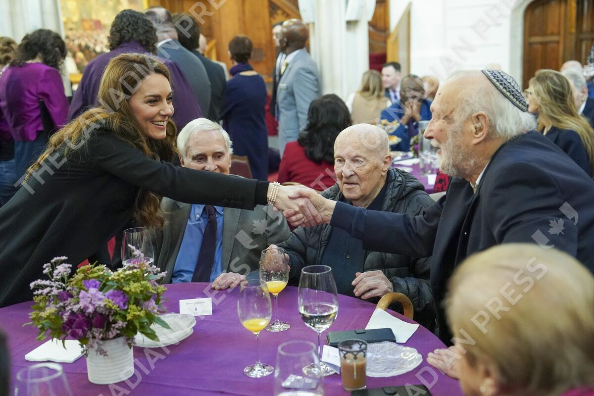 The Princess of Wales reaches across a table to shake hands with Sabit Jakupovic during a ceremony at London's Guildhall, to commemorate Holocaust Memorial Day and the 80th anniversary of the liberation of Auschwitz-Birkenau. Picture date: Monday January 27, 2025.
