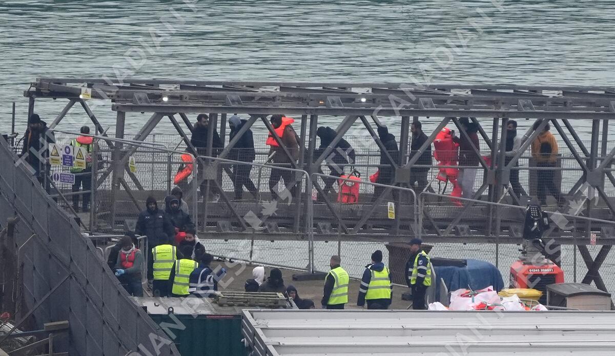 A group of people thought to be migrants are brought in to Dover, Kent, by the RNLI Dungeness Lifeboat following a small boat incident in the Channel. Picture date: Saturday December 28, 2024.