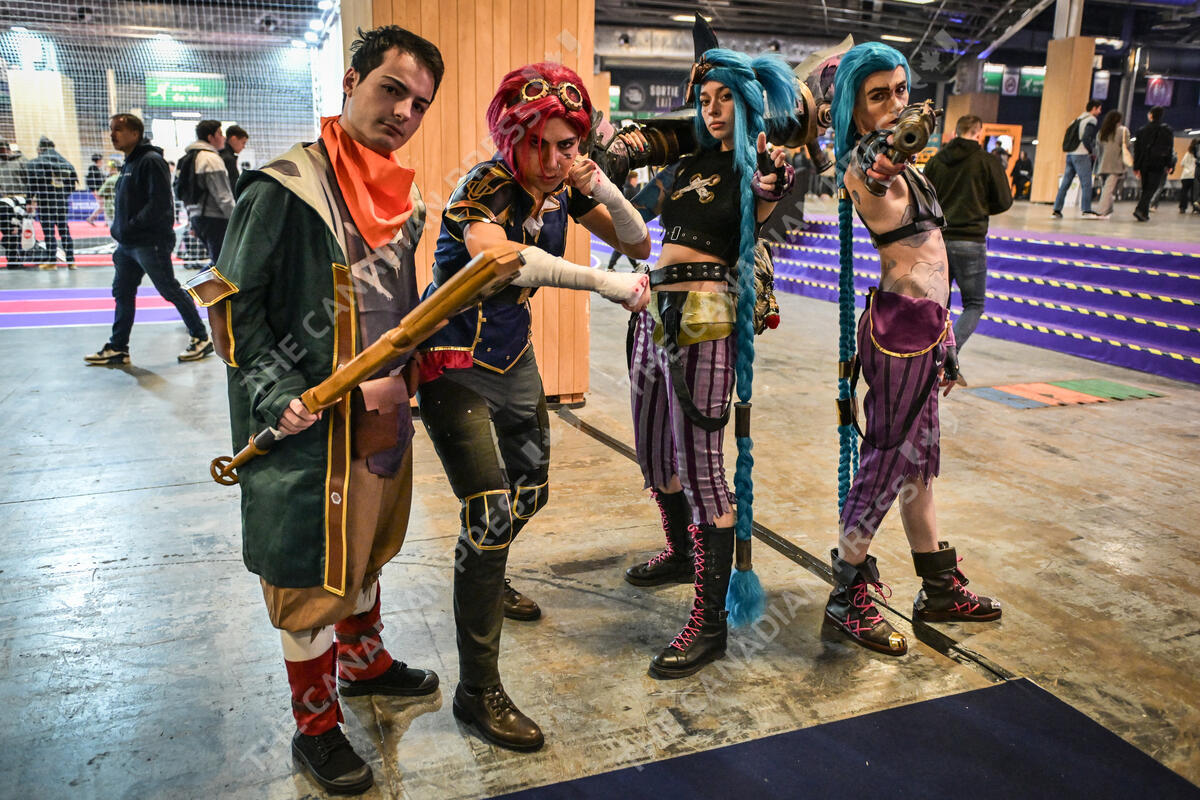 Visitors wearing League of Legends costumes pose for a photo during the Paris Game Week 2024 event at the Parc des expositions in Paris on October 23, 2024. Photo by Firas Abdullah/ABACAPRESS.COM