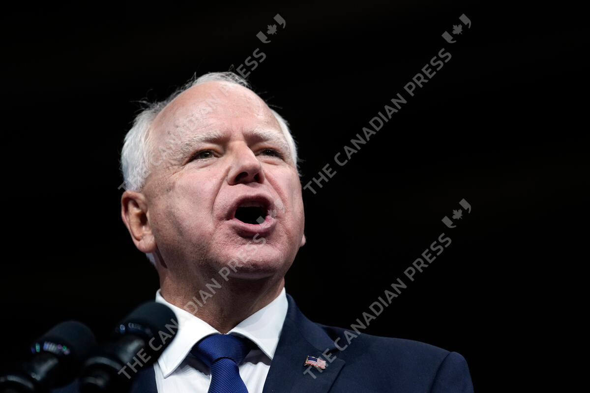 Democratic vice presidential nominee Minnesota Gov. Tim Walz appears with Democratic presidential nominee Vice President Kamala Harris at a campaign rally in Philadelphia, Tuesday, Aug. 6, 2024. (AP Photo/Matt Rourke)