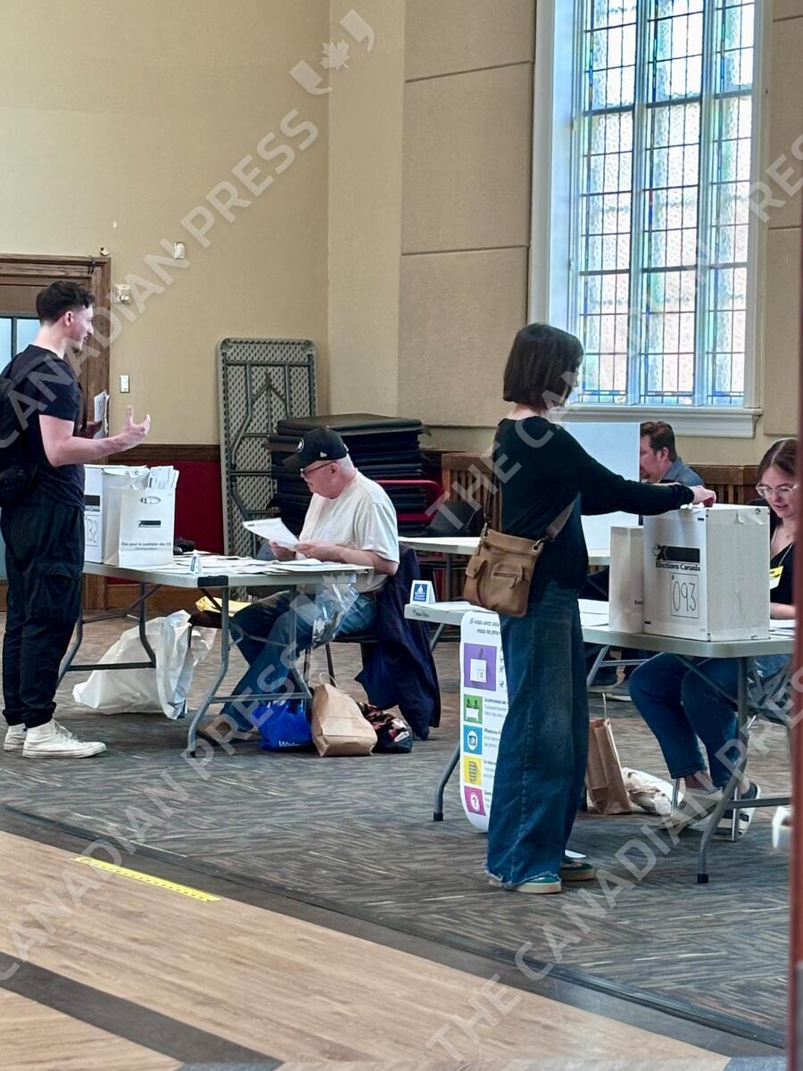 OTTAWA, April 28, 2025 People vote at a polling station in Ottawa, Canada, on April 28, 2025. Millions of Canadians are lining up to cast their ballots on Monday as U.S. President Donald Trump weighed in on the election with a new threat of annexation of the country. (Credit Image: å© Min Chen/Xinhua via ZUMA Press)