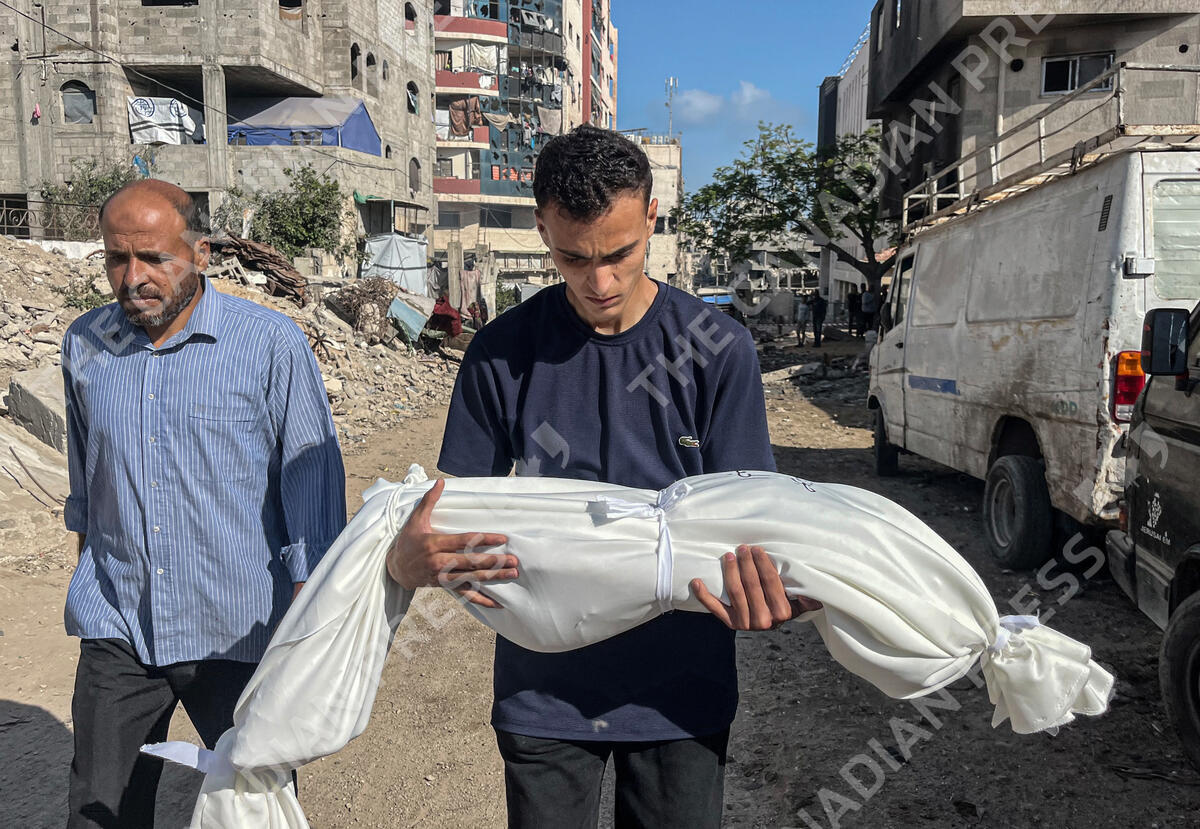 May 23, 2025, Gaza City, Gaza Strip, Palestinian Territory: Relatives of Palestinians who lost their lives mourn after the Israeli army bombed several homes in the northern Gaza Strip. The bodies of Palestinians who lost their lives in the attack are transferred to Al-Shifa Hospital in Gaza City. (Credit Image: © Hadi Daoud/APA Images via ZUMA Press Wire)