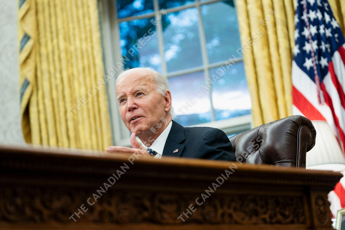 President Joe Biden speaks after a briefing from Governor of North Carolina Roy Cooper and FEMA Administrator Deanne Criswell on the latest operational updates from the impact of Hurricane Helene in the Oval Office at the White House in Washington, DC on Monday, September 30, 2024. Photo by Bonnie Cash/Pool/ABACAPRESS.COM