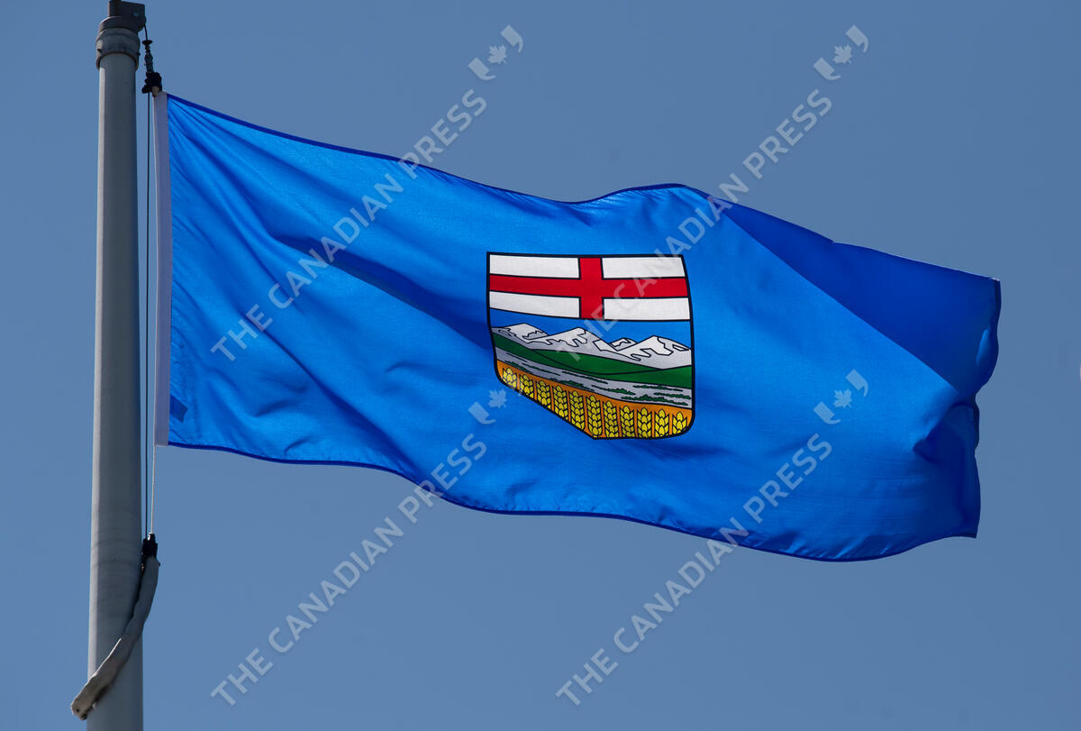 Alberta's provincial flag flies on a flag pole in Ottawa, Monday July 6, 2020. A fire at a gas well north of Calgary that injured five workers earlier this week has been extinguished. THE CANADIAN PRESS/Adrian Wyld