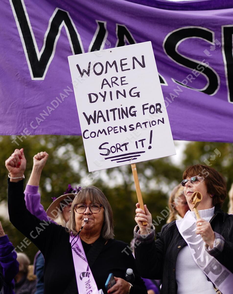Waspi (Women Against State Pension Inequality) campaigners stage a protest on College Green in Westminster, London, as Chancellor of the Exchequer Rachel Reeves delivers her Budget in the Houses of Parliament. Picture date: Wednesday October 30, 2024.