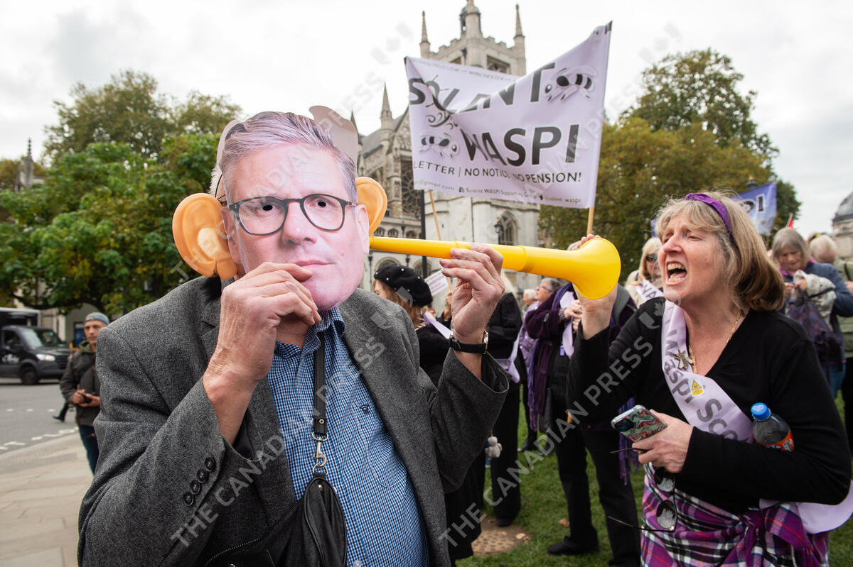October 30, 2024, London, England, United Kingdom: WASPI (Women Against State Pension Inequality) campaigners stage a protest on Parliament Square in Westminster as Chancellor of the Exchequer Rachel Reeves presents the Budget in Parliament, calling for fairer pension provisions. (Credit Image: © Thomas Krych/ZUMA Press Wire)