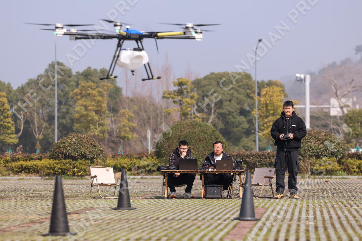 NINGBO, Feb. 28, 2025 A trainee (R) takes a practical drone training session at a low-altitude science and technology innovation base located in Jiangbei District, Ningbo, east China's Zhejiang Province, Feb 28, 2025. Ningbo is one of the pioneer cities for the country's pilot reform on low-altitude airspace administration and trial demonstration of general aviation industry. Jiangbei District has been boosting the ''low-altitude economy'' by cultivating industry-leading enterprises, improving industrial chains, creating industrial clusters, attracting talents and projects, and enriching application scenarios. It is now home to diversified enterprises and application scenarios related to the low-altitude economy, ranging from low-altitude aircraft manufacturing, drone flight training, to urban low-altitude logistics. (Credit Image: å© Jiang Han/Xinhua via ZUMA Press)