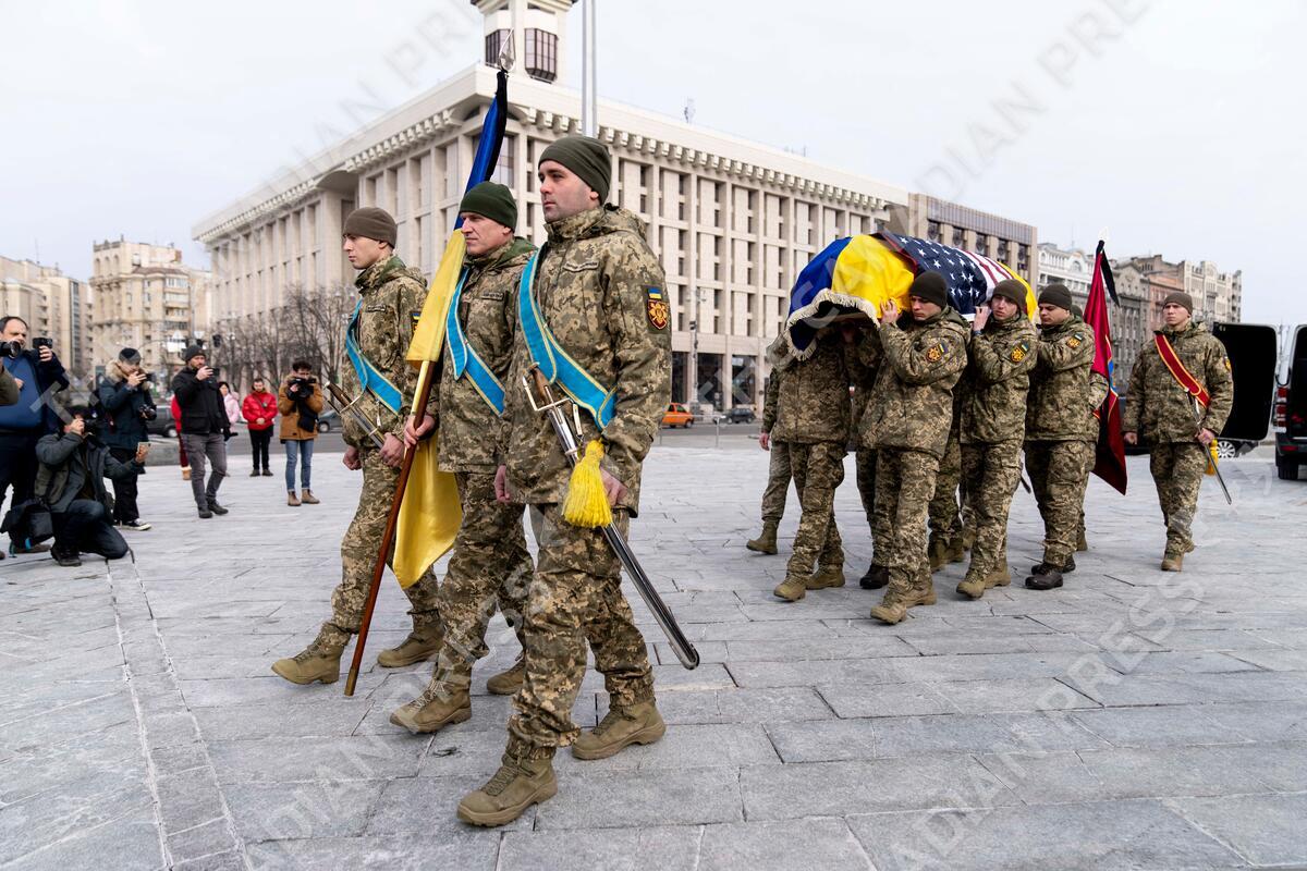 February 28, 2025, Kyiv, Kyiv City, Ukraine: Memorial service for U.S. Marine Corps veteran Ethan Hertweck, who fell serving as a combat medic with the Ukrainian armed forces. Hertweck fell in late 2023 in Avdiivka, but his body has only now been recovered (Credit Image: © Andreas Stroh/ZUMA Press Wire)