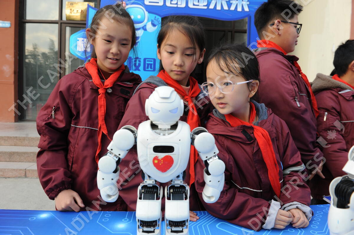 February 28, 2025, Hefei, Anhui, China: HEFEI, CHINA - FEBRUARY 28, 2025 - Students watch a robot formation performance at Yuxi Road School in Hefei, Anhui province, China, Feb 28, 2025. (Credit Image: © Cfoto/DDP via ZUMA Press) *** Local Caption *** 24723460