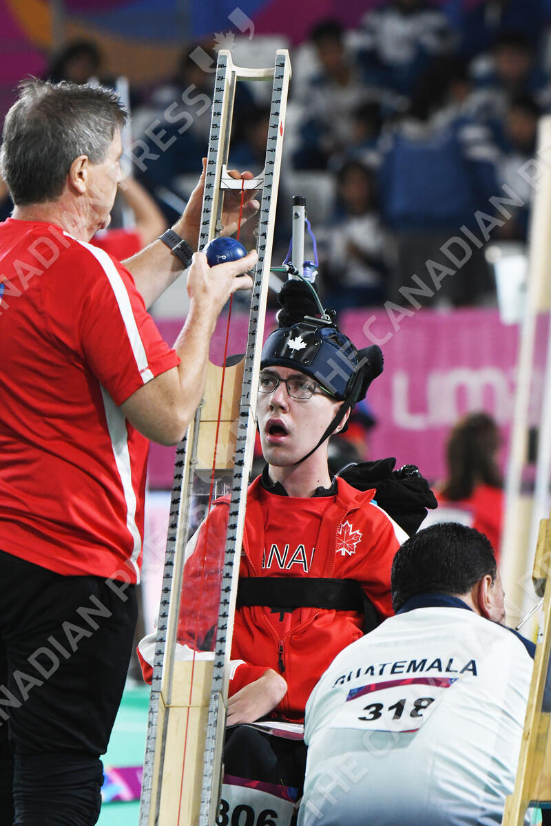 Philippe Lord competes in boccia at the 2019 Parapan Am Games in Lima, Peru on August 19, 2019. // Philippe Lord participe à boccia. CANADIAN PARALYMPIC COMMITTEE, SCOTT GRANT