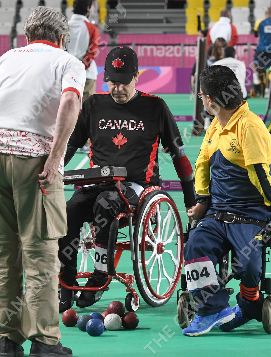 Marco Dispaltro competes in boccia at the 2019 Parapan Am Games in Lima, Peru on September 1, 2019. // Marco Dispaltro participe à boccia. CANADIAN PARALYMPIC COMMITTEE, SCOTT GRANT