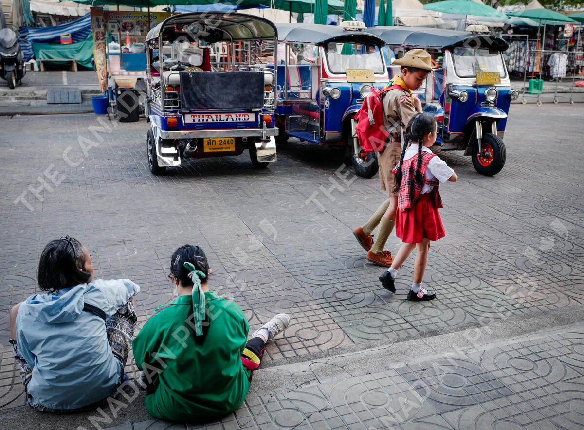 School students walk past tuk-tuks in Bangkok, Thailand, Wednesday, Jan. 29, 2025.THE CANADIAN PRESS IMAGES/Jeff McIntosh
