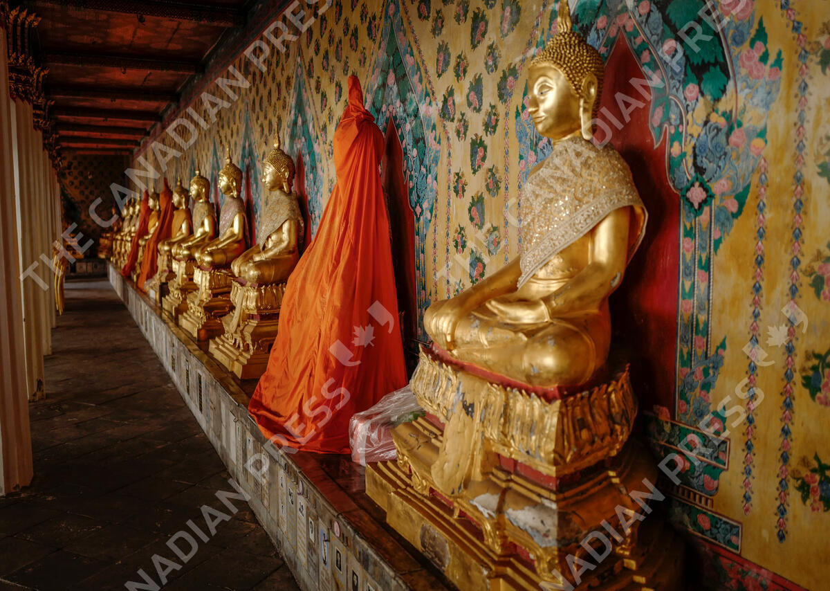 Golden Buddha statues line a wall at The Grand Palace in Bangkok, Thailand, Tuesday, Jan. 28, 2025.THE CANADIAN PRESS IMAGES/Jeff McIntosh