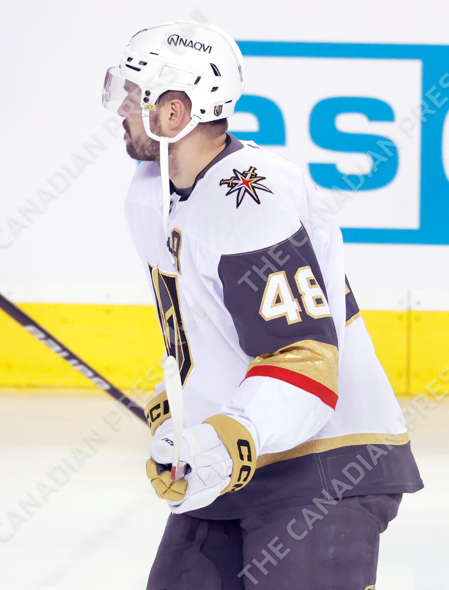 Profile photo on Vegas Golden Knights C Tomas Hertl, from Czechia, during an NHL (National Hockey League) game against the Calgary Flames in Calgary, Alta., April 15, 2025. THE CANADIAN PRESS IMAGES/Larry MacDougal
