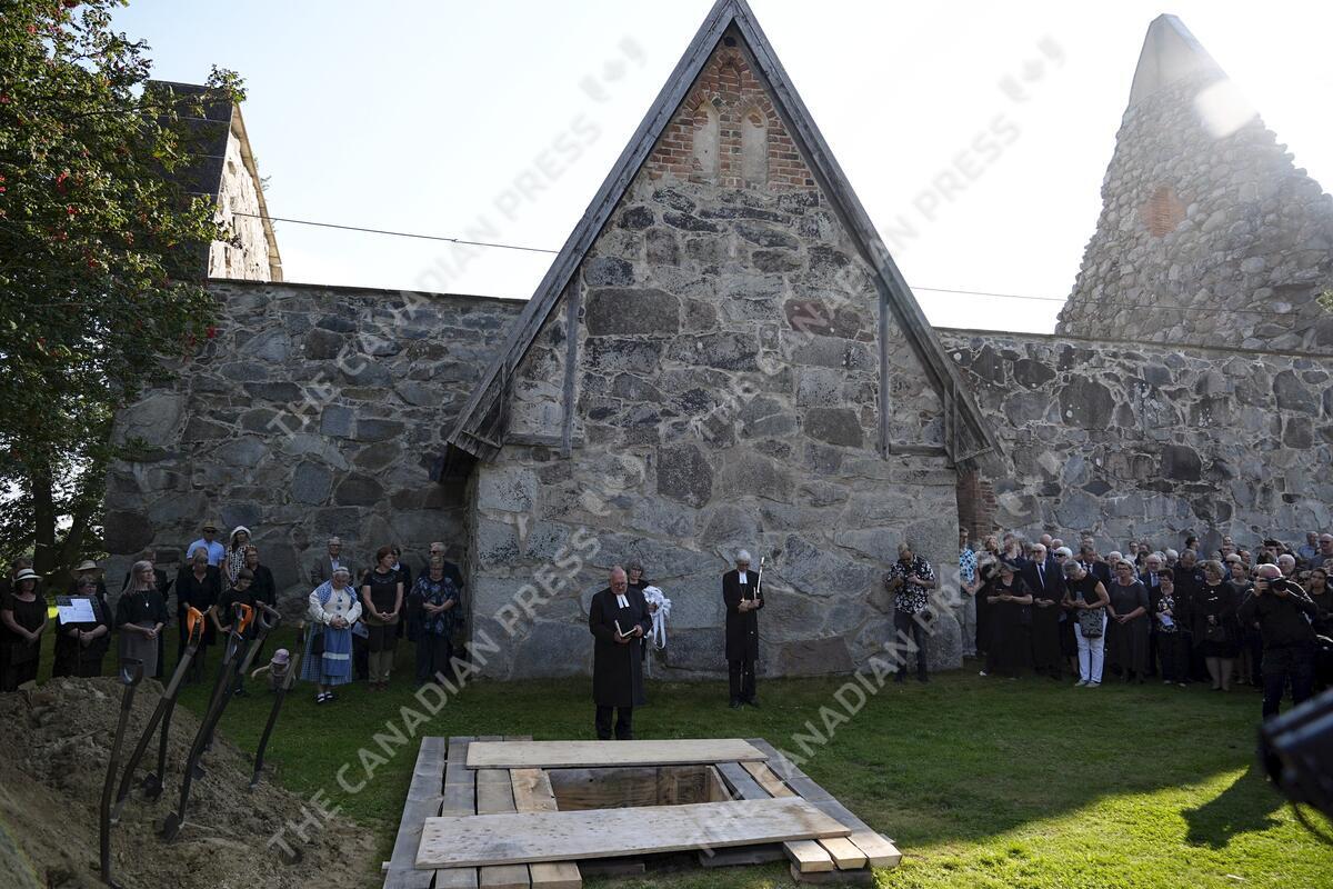 Old Finnish skulls are buried outside Church of St. Michael at Pälkäne, Finland, on September 8, 2024. The skulls were taken from Finland to Sweden in the 1870s, and they are returned to their original places of discovery this autumn. LEHTIKUVA / KALLE PARKKINEN - FINLAND OUT. NO THIRD PARTY SALES.