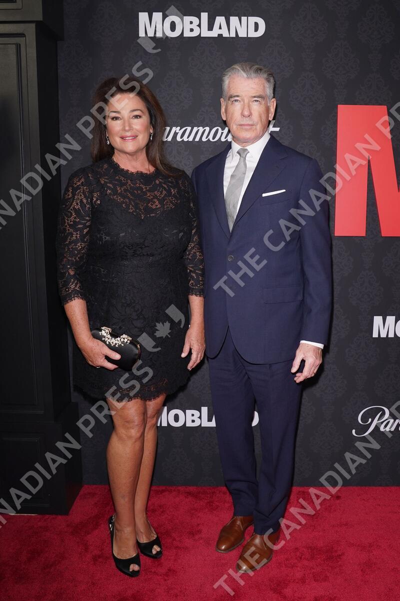 Keely Shaye Smith, Pierce Brosnan at arrivals for MOBLAND Premiere, SVA (School for the Visual Arts) Theatre, New York, NY, March 31, 2025. Photo By: Kristin Callahan/Everett Collection